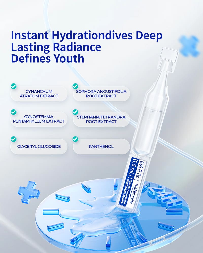Matern‘ella Hyaluronic Acid Hydrating Ampoule - Travel-Sized Single-Use Serum for Deep Moisture (30 Vials)