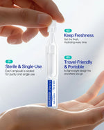 Experience fresh, hygienic hydration with every use. Each ampoule delivers a precise dose of pure hyaluronic acid to deeply moisturize, soothe, and support a stronger skin barrier.