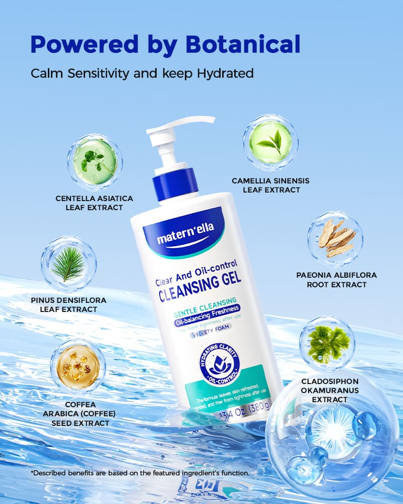 Matern’ella Premium Facial Cleansing Gel – Gentle,Fragrance-Free Face Wash for Sensitive Skin(1.34 oz)